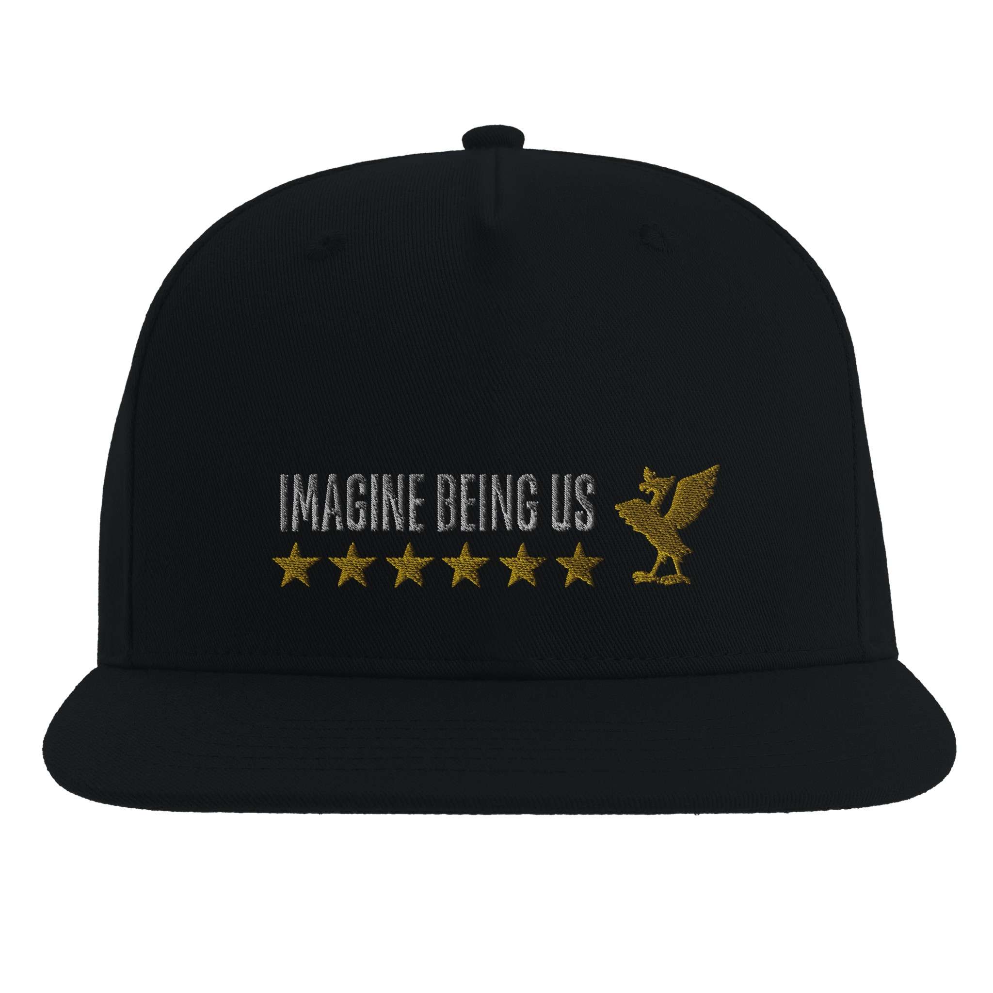 Our Imagine Being Us cap is made from 100% cotton twill, with a high-profile design with a seamless front panel. With a flat peak and retro style snapback size adjuster.